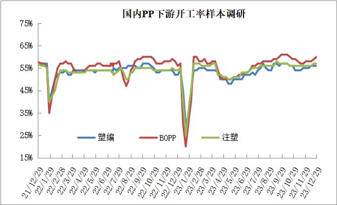 1、聚乙烯下游開(kāi)工負(fù)荷預(yù)計(jì)維持跌勢(shì),臨近春節(jié),下游工廠有提前停工預(yù)期。